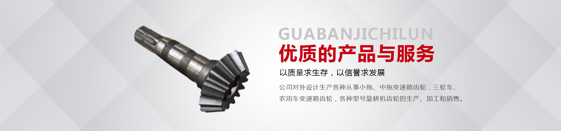 本廠位于省會東南60公里的全國重點鎮——大陸村鎮。本廠在市場內設有銷售公司,經銷工程機械;農用拖拉機;農機具的整機和全車配件。市場緊靠308國道,距青銀高速寧晉路口14公里,交通十分方便。主要從事小拖、中拖變速箱齒輪,三輪車、農用車變速箱齒輪,各種型號旋耕機齒輪、收獲機械變速箱齒輪的生產、加工和銷售。同時加工定做各種直齒輪,傘齒輪,斜齒輪,鏈輪,齒輪軸等機械產品。廠內檢測手段齊全。十幾年來與河北、北京、山東、安徽、河南、吉林、陜西、山西、寧夏、黑龍江、遼寧等省市的企業建立了穩固的業務關系。產品質量穩定、價格合理、供貨及時。